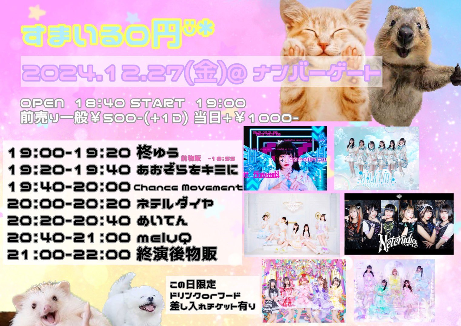 最新イベント情報 2024/12/29(日)[ BANANA Juice LIVE ]@BANANAHALL(大阪・北区堂山町) 2024年12月27日 2025/2/14(金)『ひまわり開花宣言!〜あすかけひまり主催デビューライブ〜』@Fairy Tales大阪(大阪・日本橋) 2024年12月24日 2024/12/27(金)「すまいる0円ᵕ̈*vol.3 今年もありがとう」@ナンバーゲート(大阪・難波) 2024年12月24日 2024/12/27(金)「ギラゆめwinter」@SOUNDNOTE OSAKA(大阪・日本橋) 2024年12月24日 2025/1/5(日)『carol pixie -purple-』@ナンバーゲート(大阪・難波) 2024年12月24日 2025/1/16(木)「流星★プレリュード企画ミニワンマン『スターライトセレナーデ』”クリスマスSP”」@Like an Edison 大阪店(大阪・西心斎橋) 2024年12月21日 前ページ 次ページ 登録 下にメールアドレスを入力いただくと、最新情報をお届けします。 メールアドレスを入力… 購読
