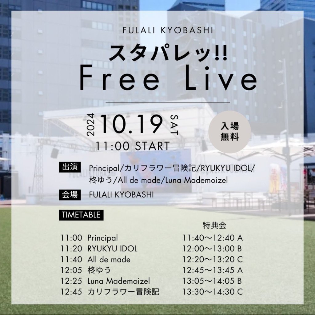 出演:Principal/カリフラワー冒険記/RYUKYU IDOL/柊ゆう/All de made/Luna Mademoizel